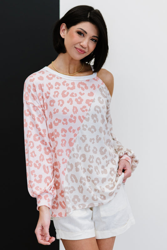 BiBi Just Wanna Have Fun Printed French Terry Top in Blush/Oatmeal