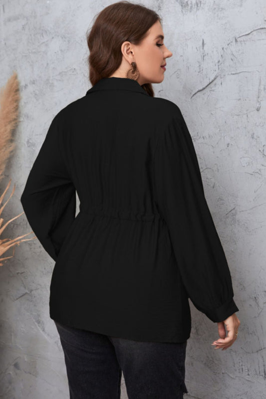 Plus Size Drawstring Waist Collared Neck Babydoll Blouse
