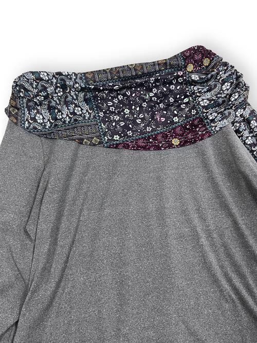 Plus Size Printed Mock Neck Buttoned Maxi Dress