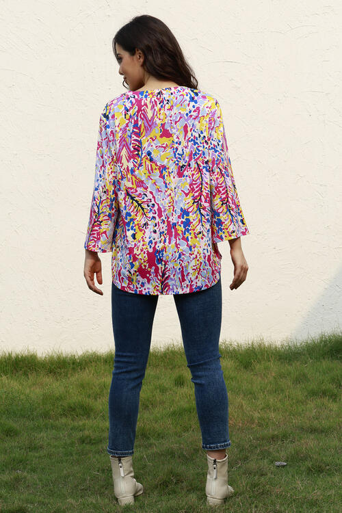 Plus Size Printed Flare Sleeve V-Neck Dress