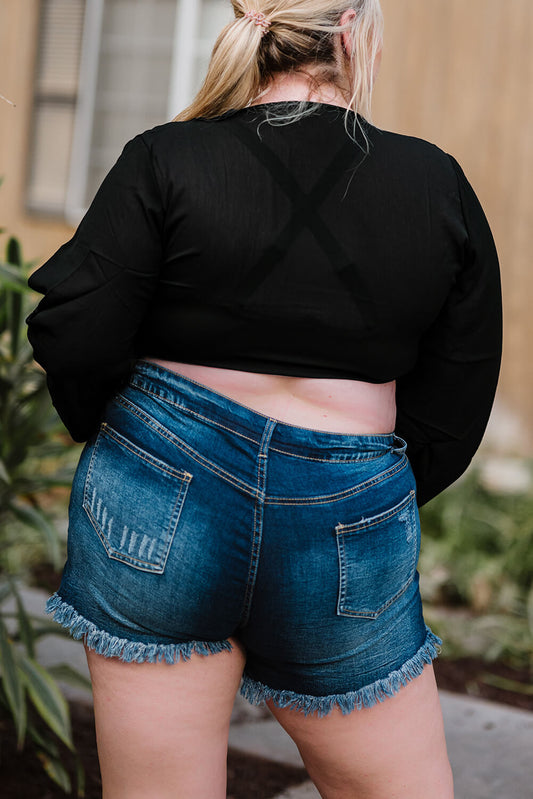 Plus Size Tie Neck Flounce Sleeve Blouse