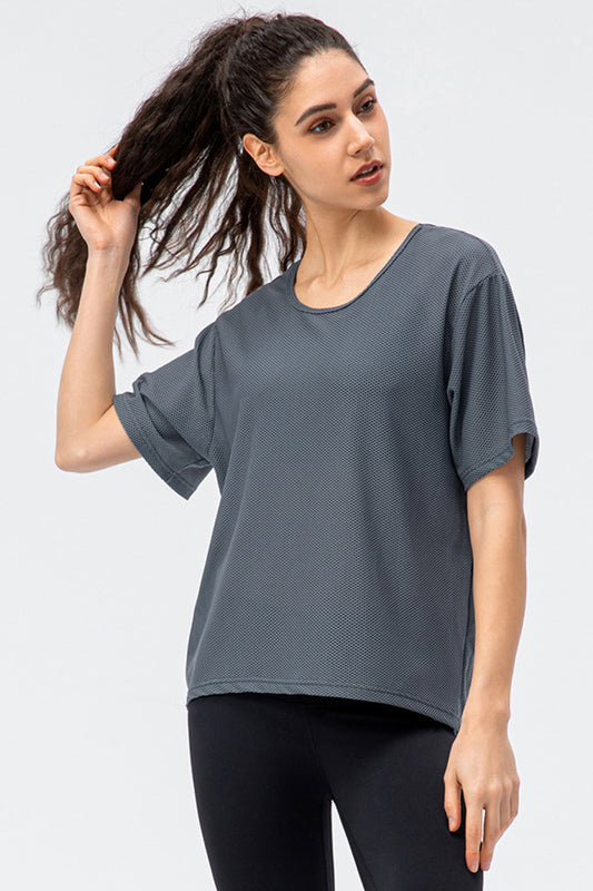 Breathable Raglan Sleeve Side Slit Yoga Top
