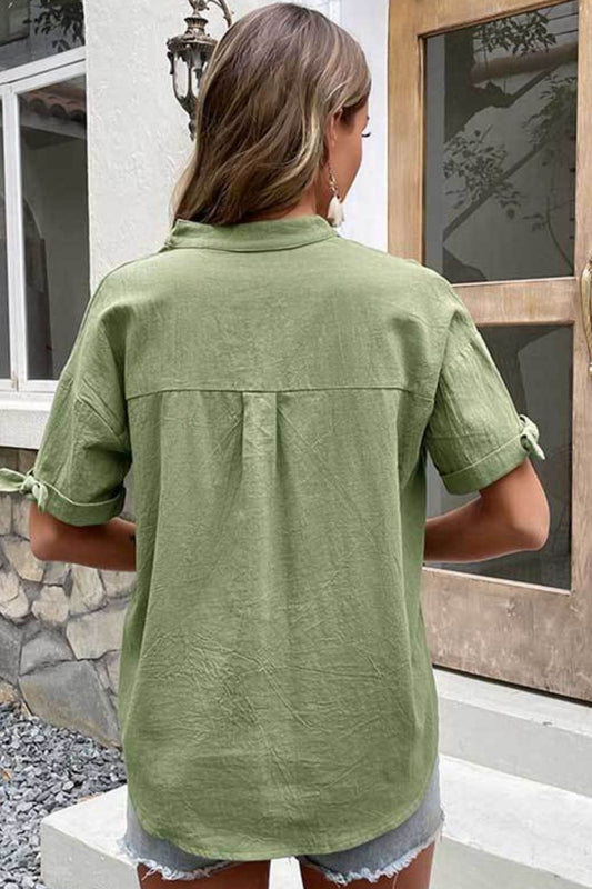 Sold outQuarter Button Tie Cuff Top