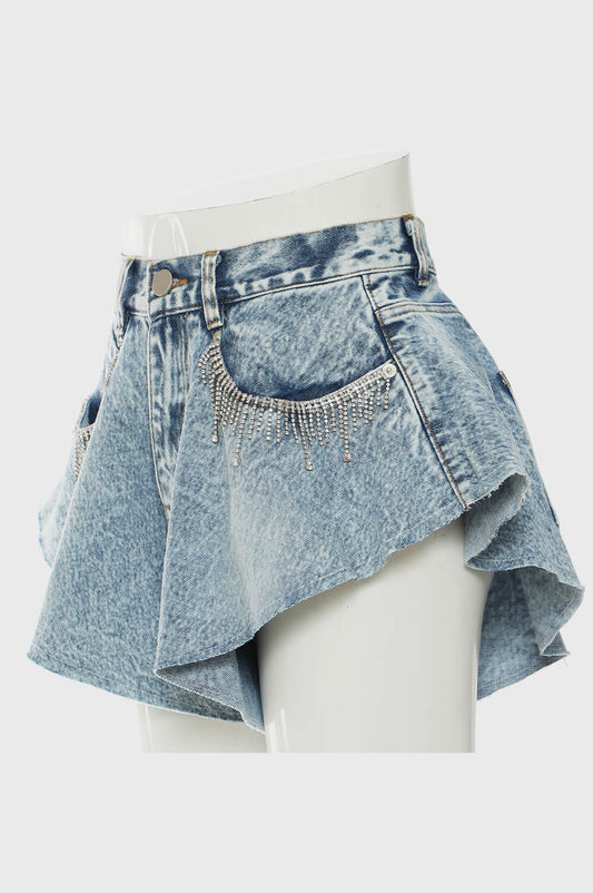 Rhinestone Fringe Detail Denim Shorts