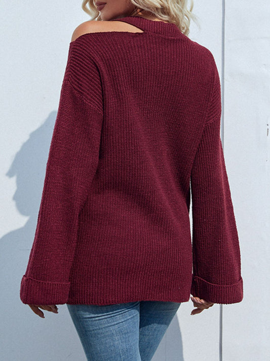 Sold outRib-Knit Cutout Flare Sleeve Sweater