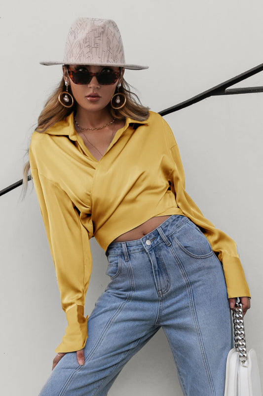 Sold outSatin Bishop Sleeve Cropped Wrap Top