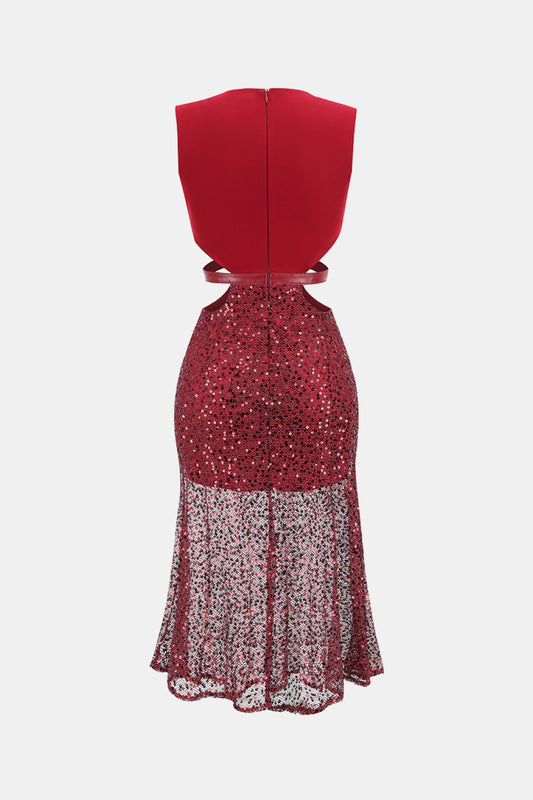 Sequin Cutout Plunge Spliced Mesh Dress