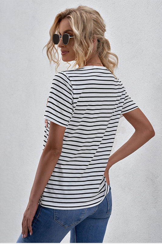 Sold outSequin Pocket V-Neck Striped Tee