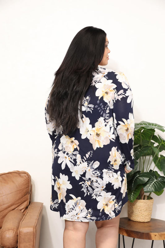 Sew In Love Full Size Long Sleeve Flower Print Blouse