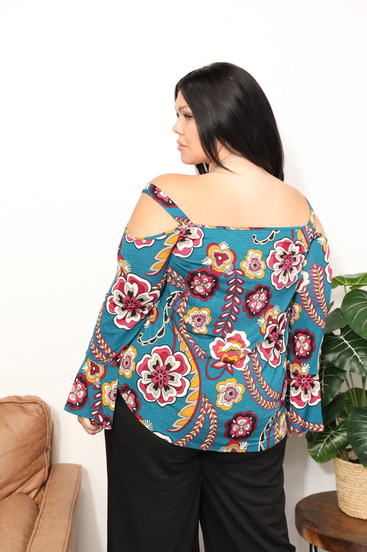 Sew In Love Full Size Floral Cold Shoulder Blouse