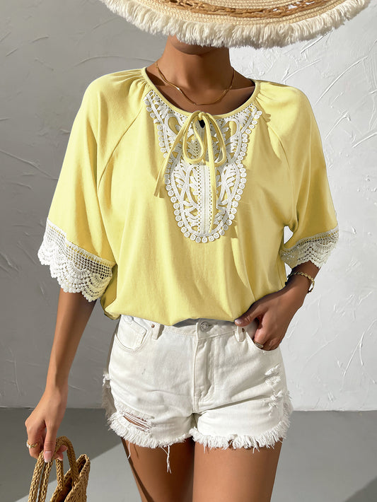 Sold outSpliced Lace Tie-Back Babydoll Top