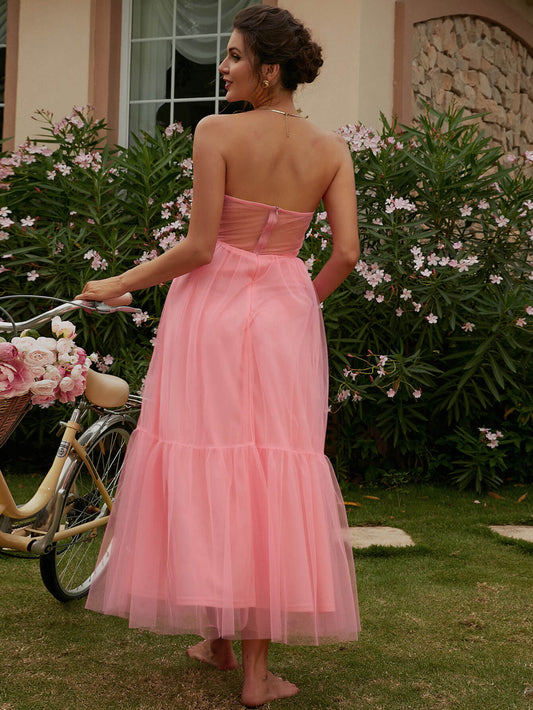 Strapless Sweetheart Neck Tulle Tiered Maxi Dress