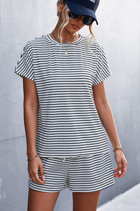Striped Smocked Square Neck Cropped Top and Mini Skirt Set