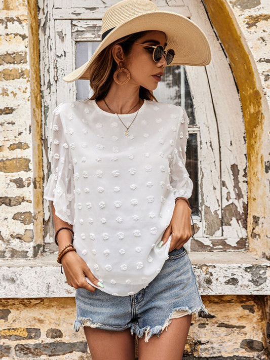 Swiss Dot Flutter Sleeve Babydoll Blouse