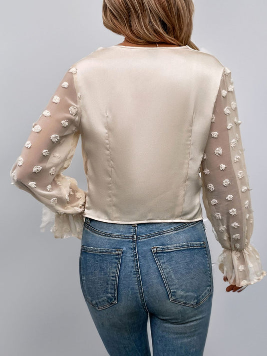 Swiss Dot Balloon Sleeve V-Neck Blouse
