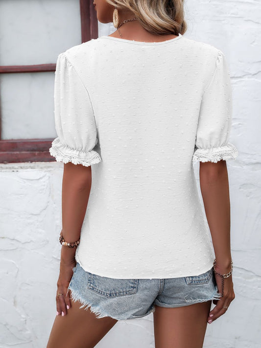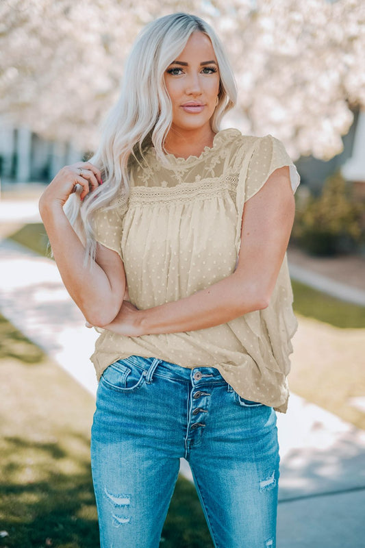 Swiss Dot Spliced Lace Flutter Sleeve Top