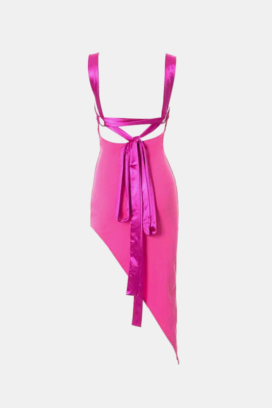 Tie Back Asymmetrical Hem Sleeveless Dress