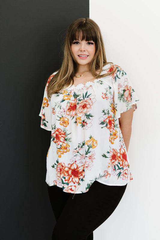 AMOLI Favorite Flower Full Size Run Crochet Trim Top
