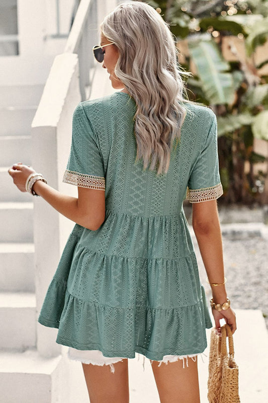 Contrast Scoop Neck Openwork Half Sleeve Cover Up