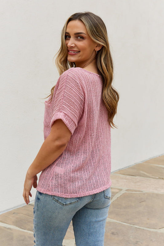 e.Luna Full Size Chunky Knit Short Sleeve Top in Mauve