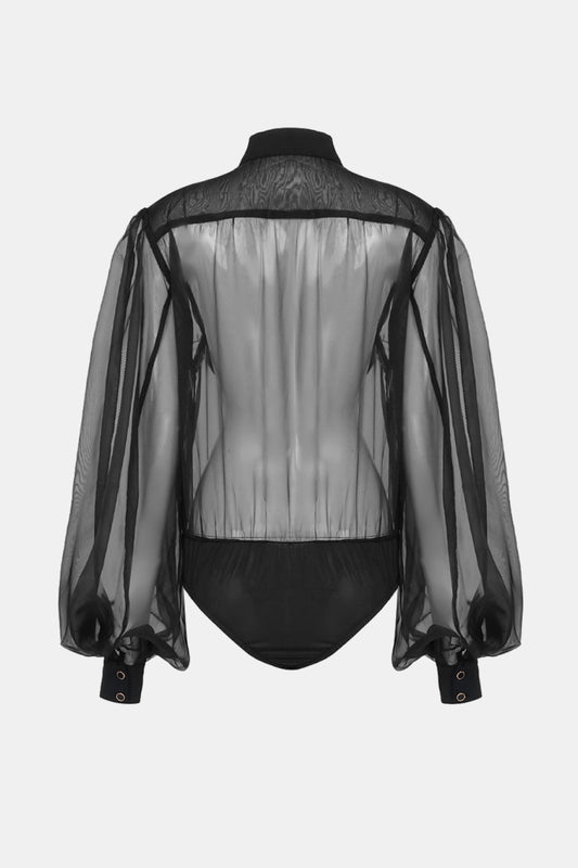 Bishop Sleeve Collared Sheer Bodysuit