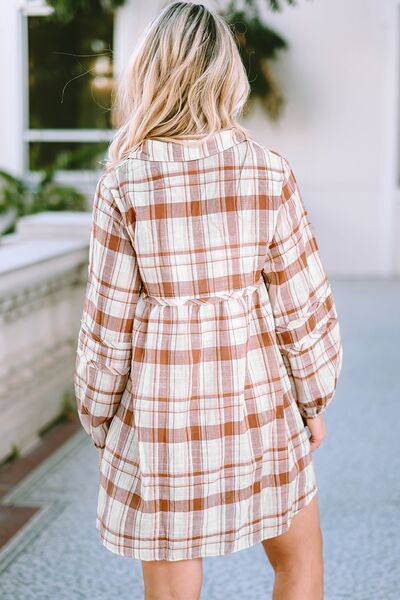 Plus Size Printed Tie Neck Balloon Sleeve Mini Dress