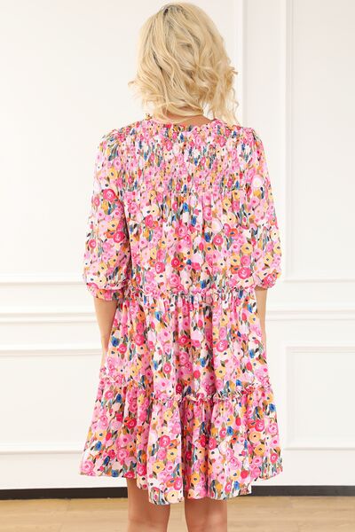 Frill V-Neck Balloon Sleeve Tiered Dress