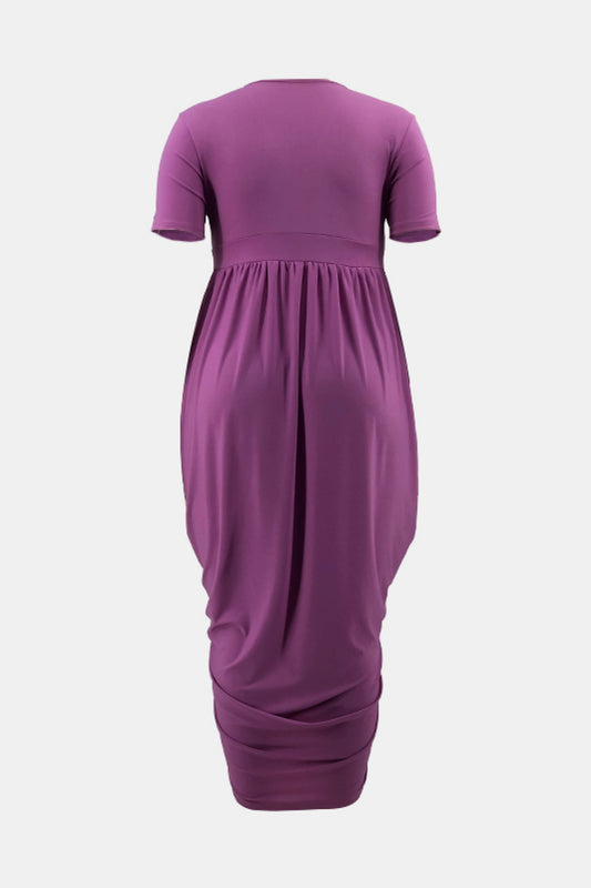 Plus Size Pleated Detail Surplice Midi Dress