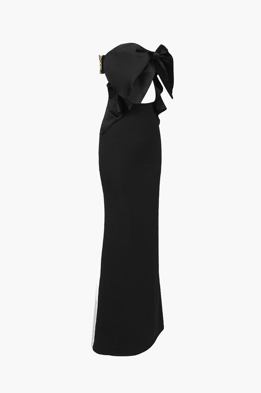 Two-Tone Strapless Cutout Bow Detail Dress