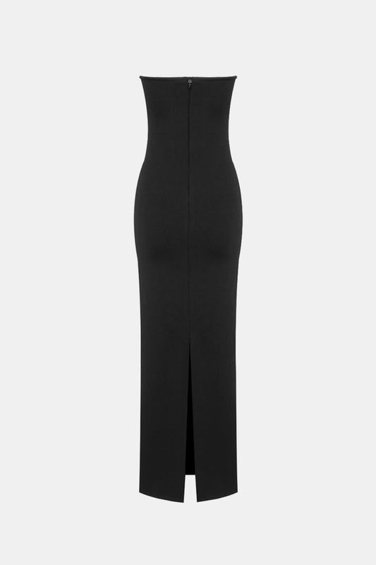 Cat Style Lace-Up Strapless Slit Dress
