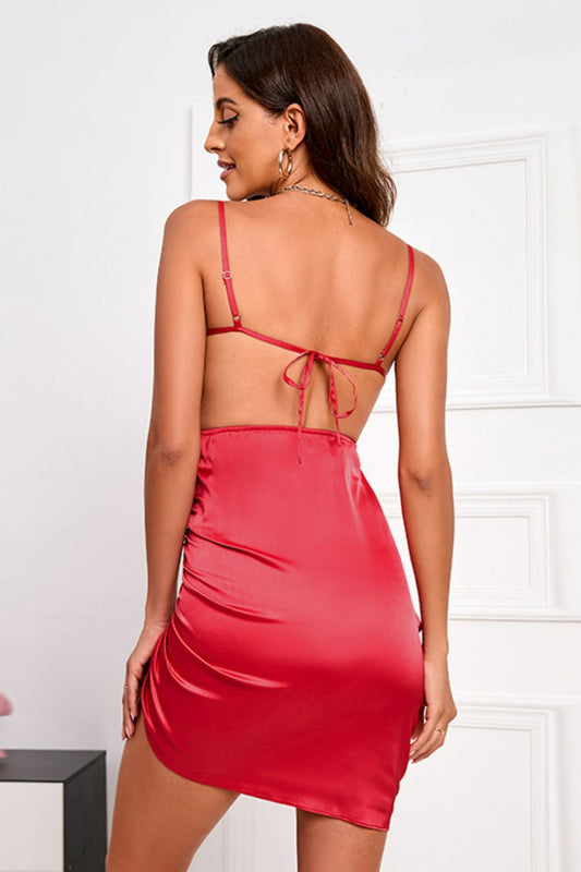 Ruched Tie-Back Asymmetrical Spaghetti Strap Dress