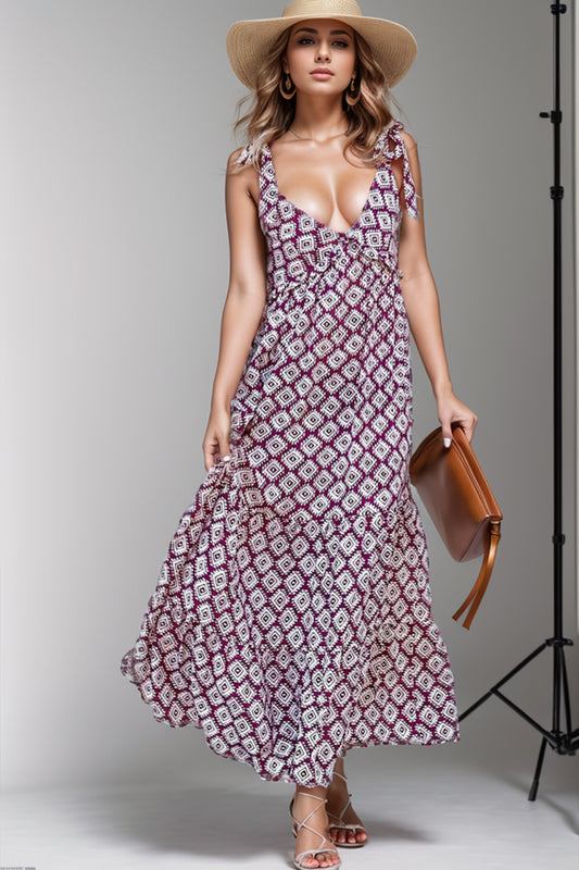 Printed Tie Neck Lantern Sleeve Mini Dress