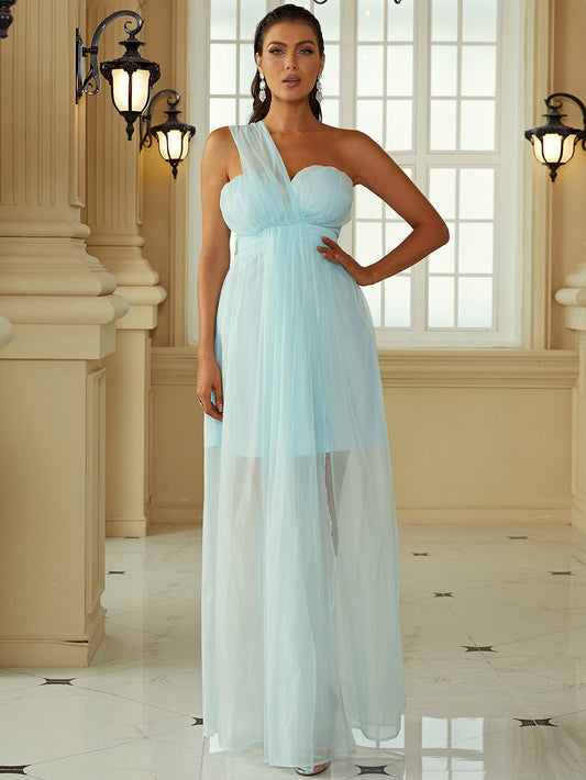 Sold outOne-Shoulder Mesh Zip-Back Dress