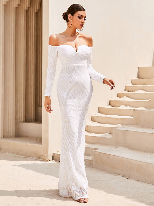 Sequin Strapless Sweetheart Neck Maxi Dress