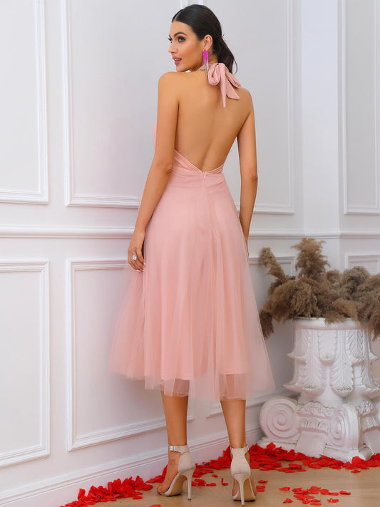 Sold outHalter Neck Backless Tulle Dress