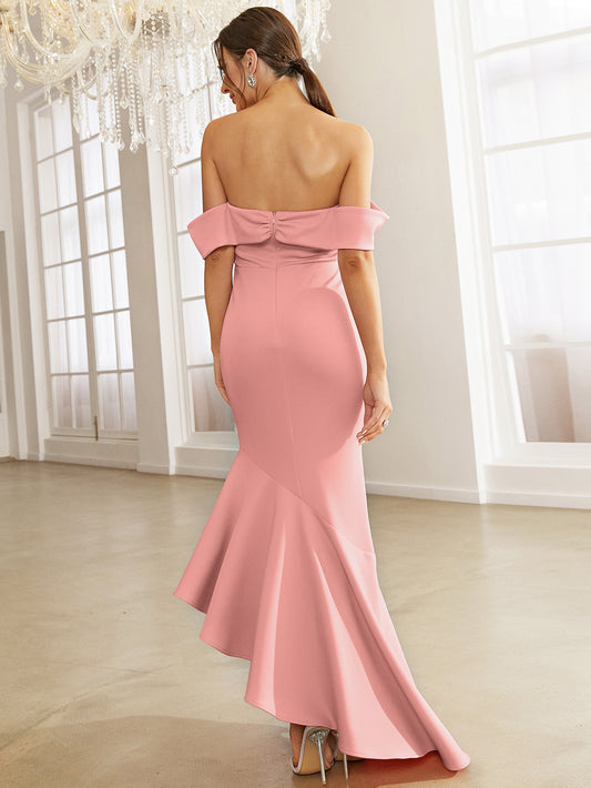 Ruffled Asymmetrical Hem Cutout Off-Shoulder Fishtail Dress