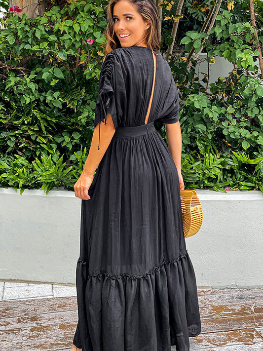 Sold outPlunge Neck Tie Sleeve Maxi Dress