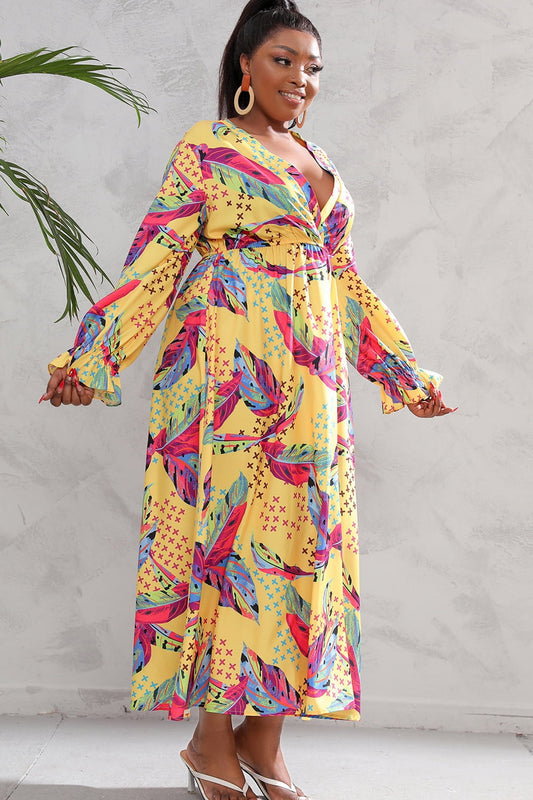 Plus Size Printed Flounce Sleeve Maxi Dress