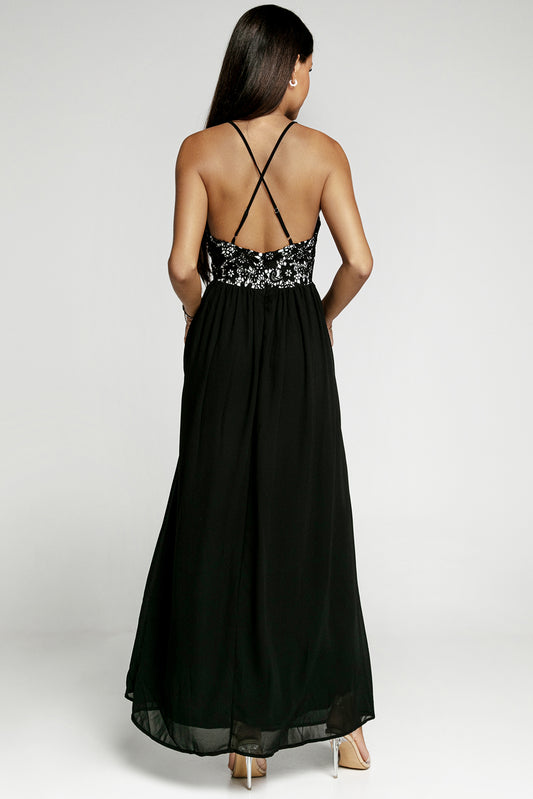 Crisscross Spliced Lace Split Chiffon Maxi Dress