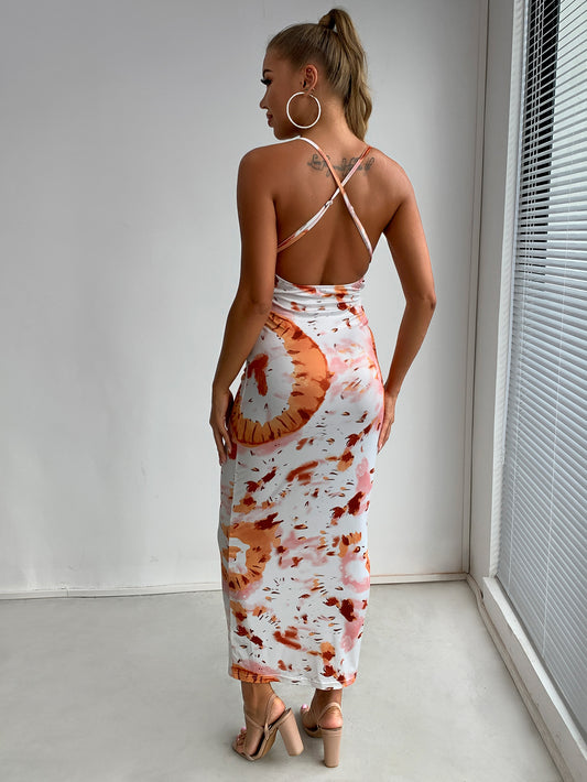 Printed Crisscross Halter Neck Maxi Dress