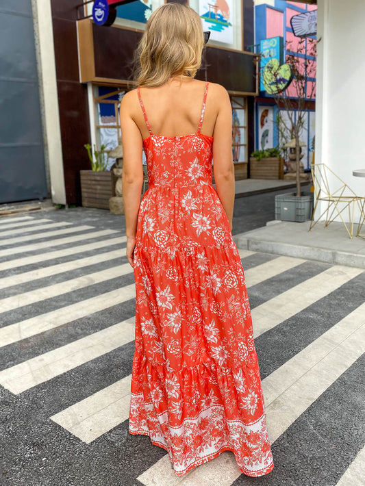 Bohemian Spaghetti Strap Frill Trim Maxi Dress
