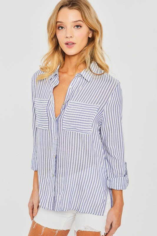 Love Tree Striped Collared Neck Long Sleeve Shirt