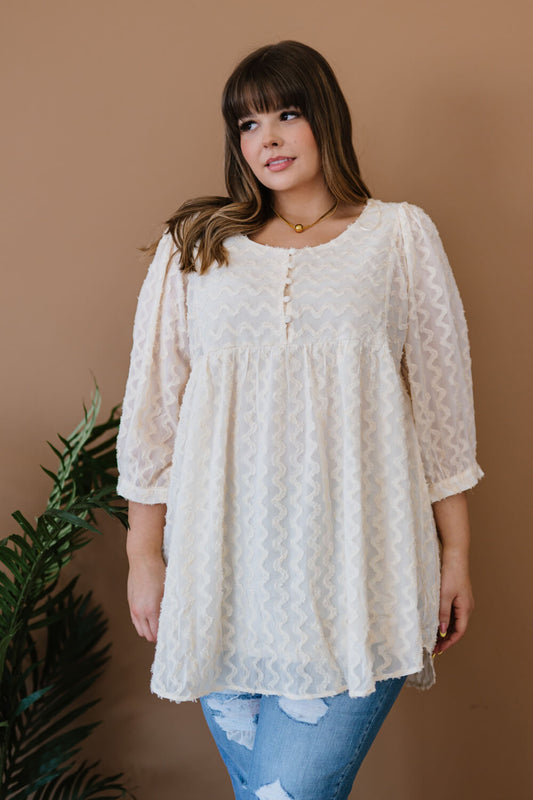 Davi & Dani Wave Hello Full Size Run Textured Babydoll Blouse