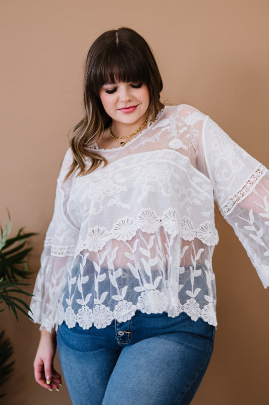 Davi & Dani Lace Oasis Full Size Run Bell Sleeve Top