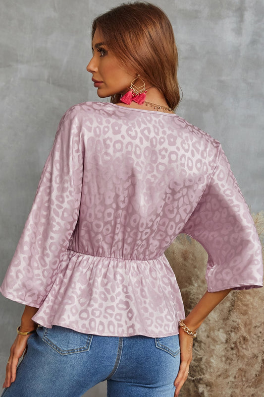 Leopard Three-Quarter Sleeve Peplum Blouse