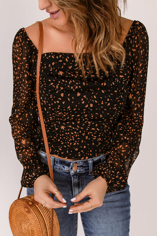 Sold outPrinted Balloon Sleeve Plunge Blouse