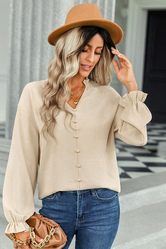 Sold outButterfly Sleeve Ruched V-Neck Top