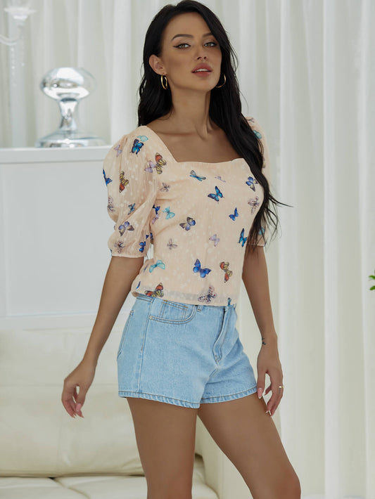 Lace Off-Shoulder Flounce Sleeve Cropped Top