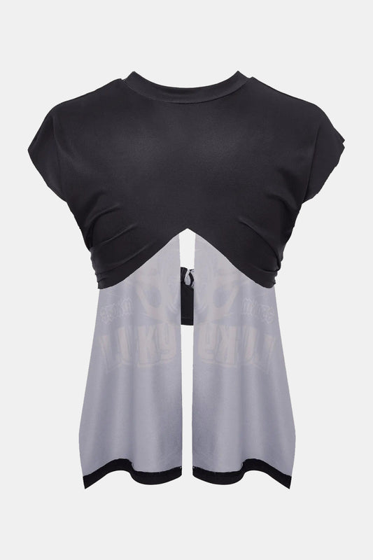 Sold outGraphic Split Capped Sleeve T-Shirt