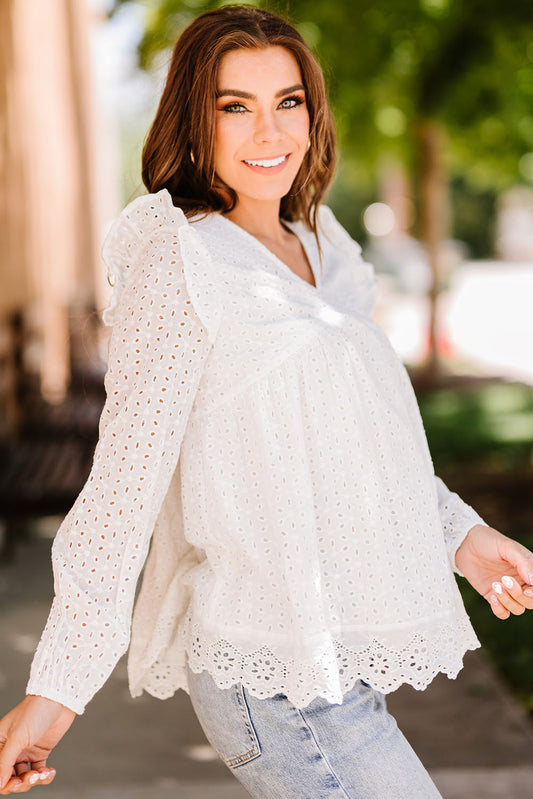 Ruffle Shoulder Scalloped Hem Babydoll Top